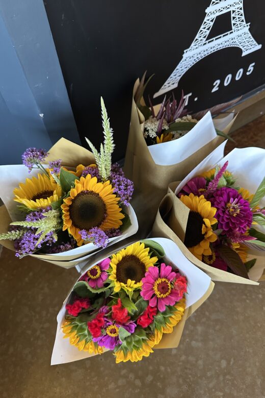 Our farm-fresh cut flower bouquets are available at Paris Coffee Co’s downtown and Collegiate locations, and the Paris Farmer’s and Artisan Market (Saturdays April-Oct), or you can call/text Erica at 903-517-0117 for custom orders.