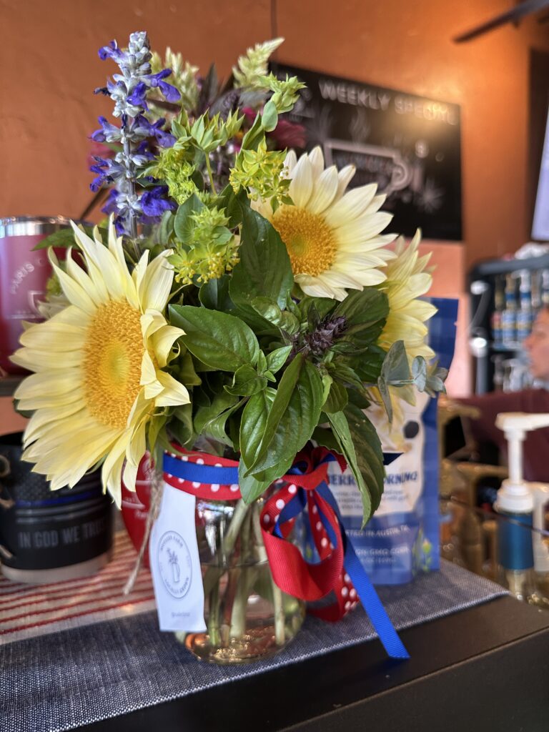 We are proud to offer locally grown flowers in Paris, TX and are excited to be partnering for our third year with Paris Coffee Co to stock our wrapped bouquets in two of their locations. We usually bring fresh-cut flowers to the Collegiate and Downtown locations on Tuesday mornings and sometimes offer a restock on Thursday or Friday if needed.